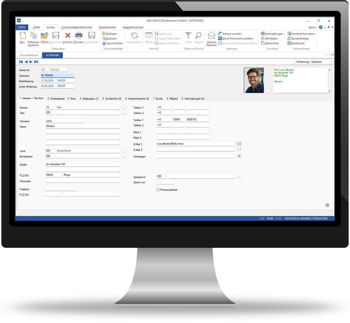 n&h AMAS ist ein Adressen und Mitglieder Auskunfts- und Verwaltungssystem mit umfangreichen Selektionsmöglichkeiten unter besonderer Berücksichtigung internationaler Anschriftenaufbereitung.